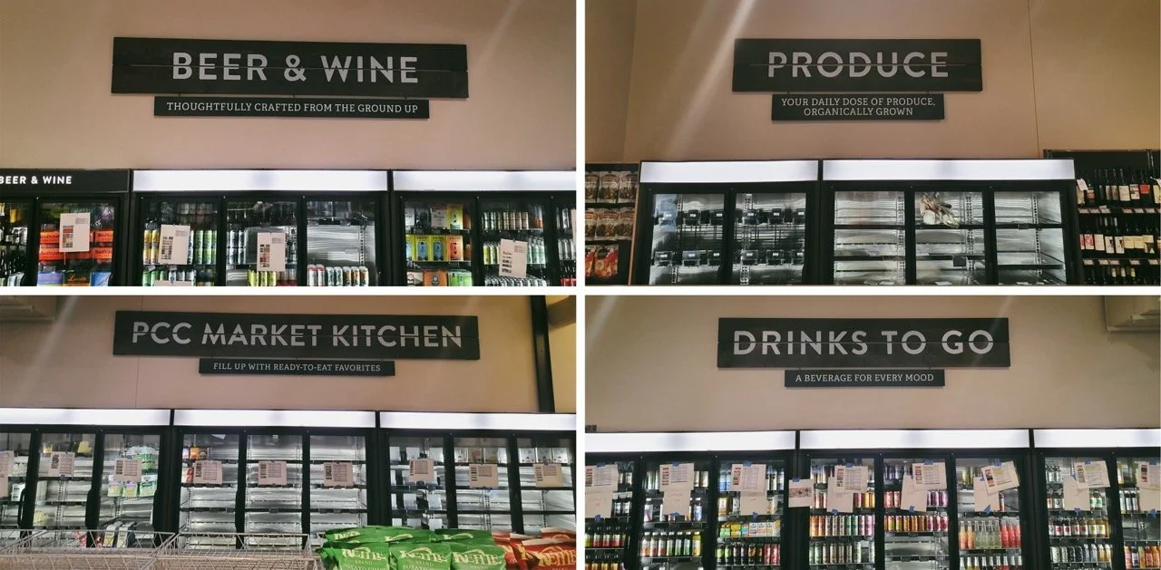 PCC stands out not only as the largest community-owned food market but also as a leader in sustainable practices. They maintain high standards in every operational aspect, including partnerships and sourcing materials for their stores. Their commitment to sustainability is evident in every detail – even their wayfinding signage!