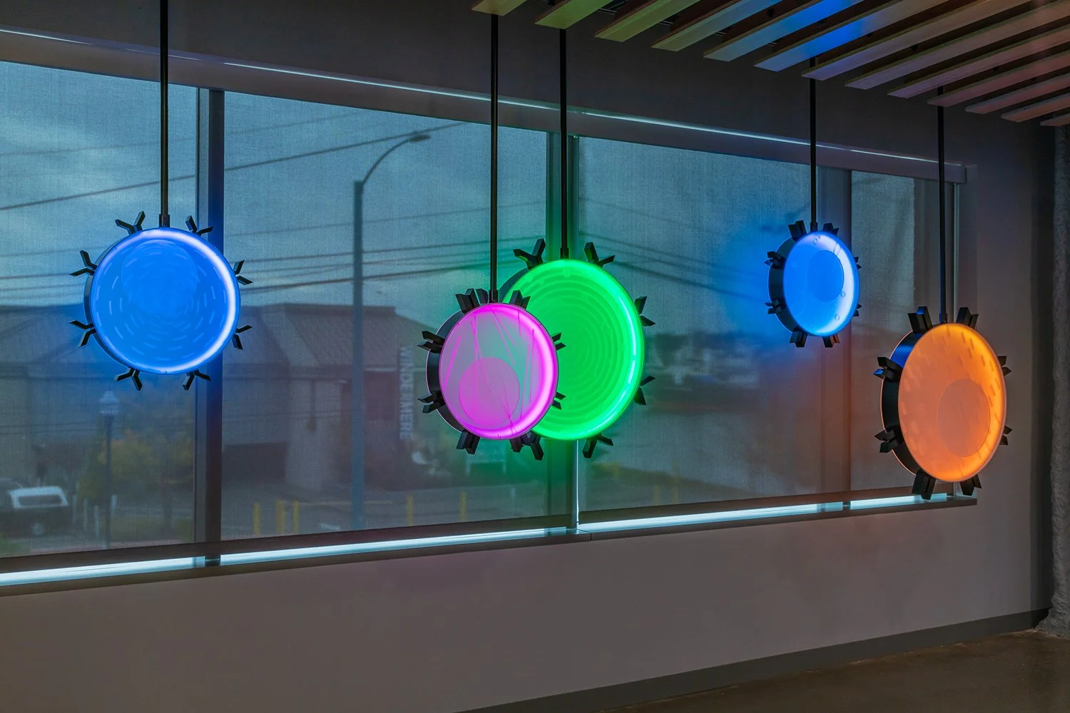 Primary Materials: Animated Color-Changing LED, Controller, Acrylic, Aluminum, and Custom Hardware