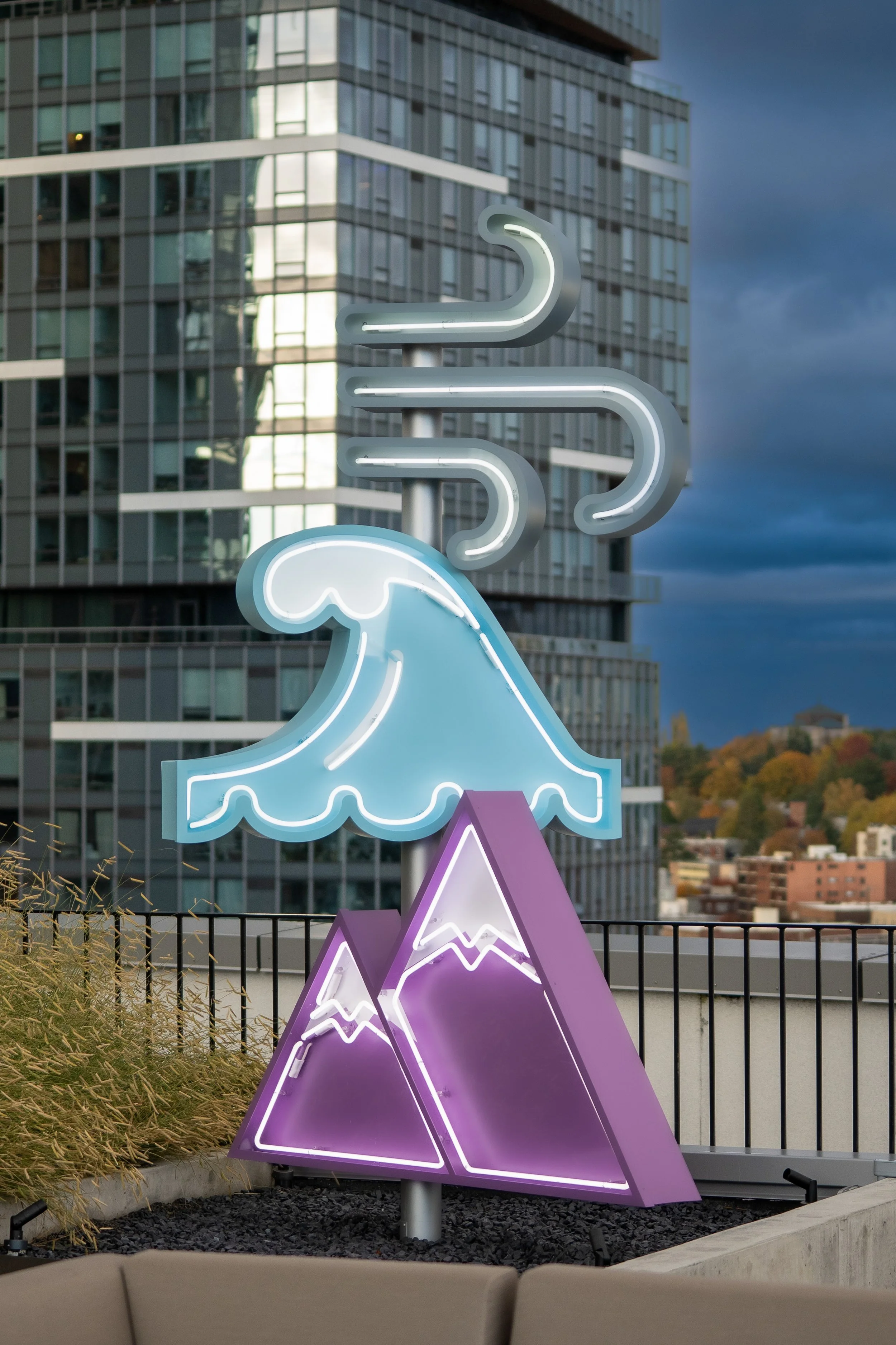These four neon sculptures explore imaginative combinations of weather and natural elements, full of Pacific Northwest whimsy.